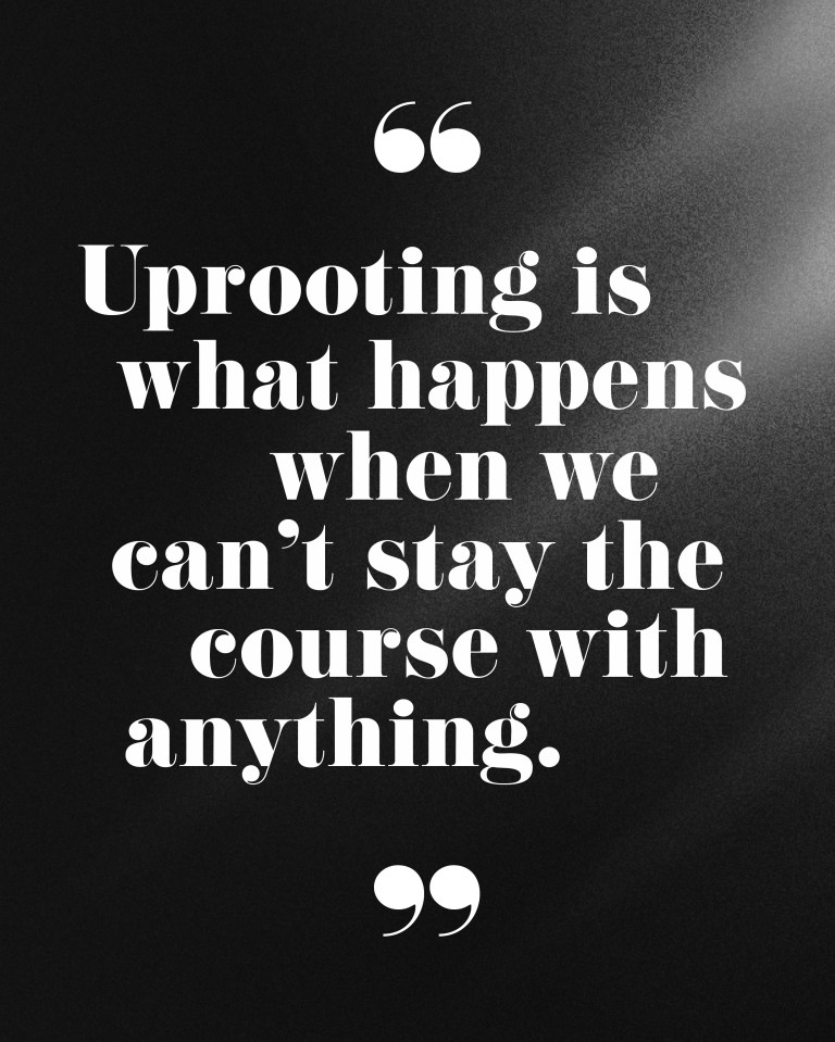 One of the most common (and damaging) self-sabotaging behaviors, uprooting is what happens when we can’t stay the course with anything. It’s a pattern of moving, changing jobs, shifting friends, relationships, having big ideas, but minimal follow-through.