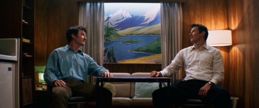 That discipline carries through every environment in the film. Each booth, bar, and world has its own palette, down to the pamphlets and signage, yet nothing ever feels overwhelming. Tomiak credited production designer Zazou Meyers for building a world that already understood color before it reached post. In the grade, his focus was finding “that threshold that didn’t feel gimmicky.” “We didn’t want a hundred colors fighting each other,” he said. Anchoring whites became essential -giving the audience a reference point that allowed saturated colors to shine without chaos.